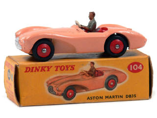 DINKY TOYS (GB) 104 ASTON MARTIN DB 3 Touring rose, intérieur & jantes rouges