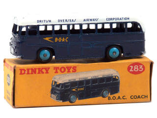 DINKY TOYS (GB) 283 Bus 'B.O.A.C' bleu foncé, toit blanc & jantes bleu vif