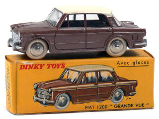 DINKY TOYS (FRANCE) 531 FIAT 1200 GRANDE VUE (version avec jantes convexes) havane métal, toit crème