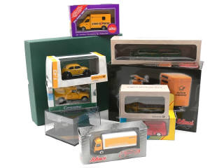 miniatures reproduisant notamment les modèles : FORD, VOLKSWAGEN, MERCEDES, HOLDEN, ZÜNDAPP & LAND ROVER - on y retrouve les marques : LLEDO, SCHUCO, BUB, CARARAMA, SIKU & VITESSE - 5 véhicules regroupés dans un coffret