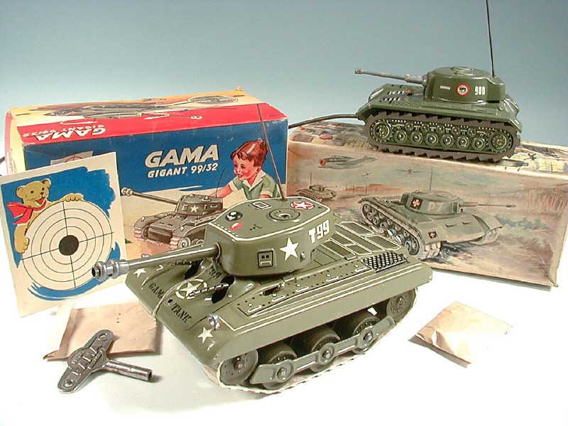 GAMA (ALLEMAGNE) 99/32 GIGANT Tank mécanique en tôle lithographiée kaki