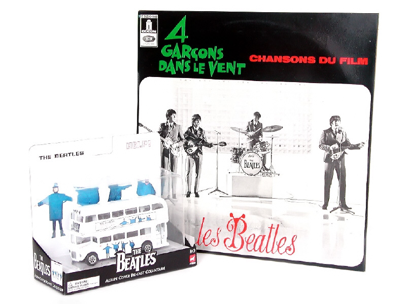 ce modèle appartient à une série distribuée très peu de temps avant le rachat de CORGI par HORNBY en mai 2008 - boîte spécifique avec décoration du 5ème album des BEATLES - on y joint un 33 tours '4 Garçons dans le Vent' (4ème album des BEATLES) ODEON EMI référence 2C06204145 (état 'A')
