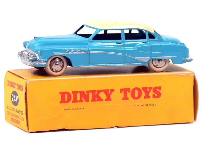 DINKY TOYS (FRANCE) 24V BUICK ROADMASTER (version avec intérieur de toit quadrillé & jantes chromées) bleu, toit crème