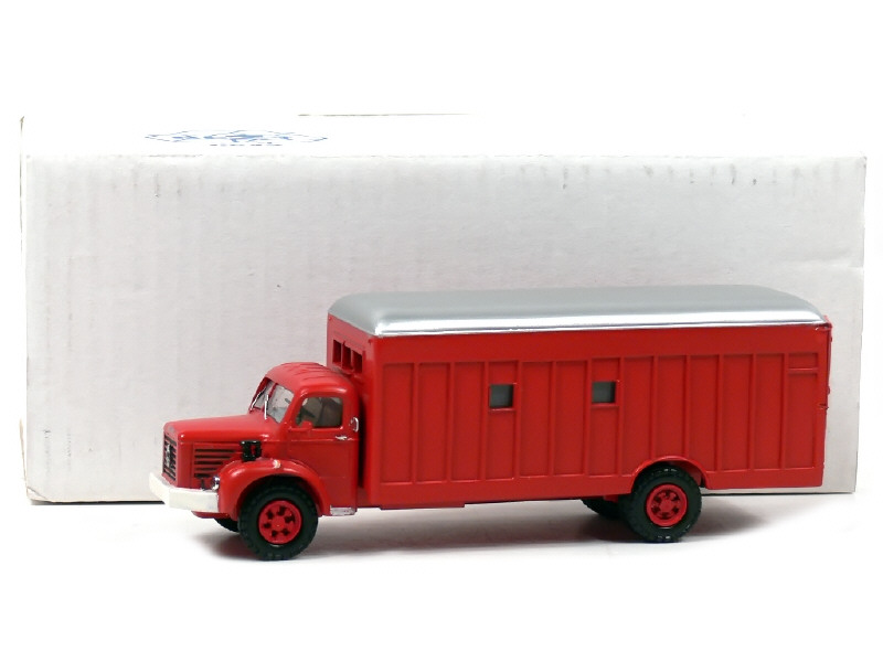 MINICIRQUE (FRANCE) MV75 BERLIET Camion-fourgon réserve d'huiles du cirque BOUGLIONE rouge & gris métal