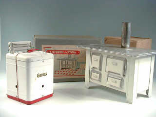 LES JOUETS 'JAKY et KITOU' LYON (FRANCE) La cuisinière de KITOU en tôle peinte blanc & argent