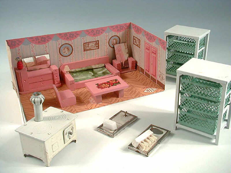CREATION NIL (FRANCE) Coffret-diorama de mobiliers miniatures en bois rose