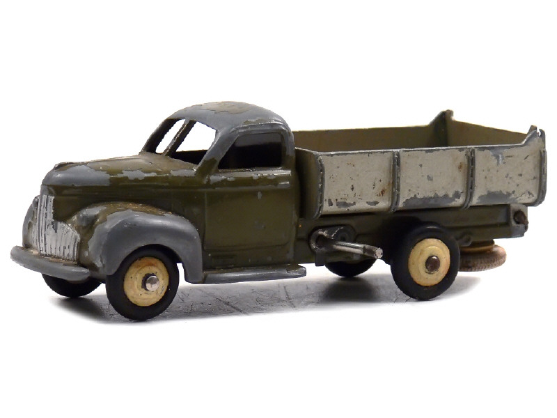 DINKY TOYS (FRANCE) 25M STUDEBAKER Benne basculante (avec cabine type 2 & roues à pneus 'M') kaki, benne gris métal doré, jantes crème
