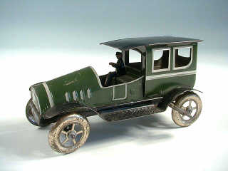 fabriquée de 1918 à 1926 - longueur 16 cm - moteur à ressorts (poussif) - direction - chauffeur en tôle lithographiée - SUPERBE !