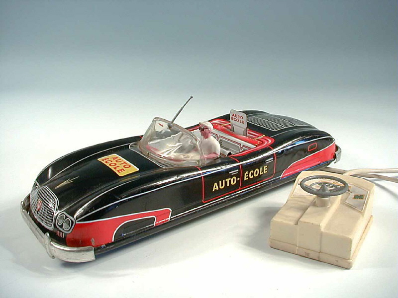 longueur 34 cm - moteur à pile filoguidé (non testé) - avec conducteur, antenne & pannonceau 'Auto-école'