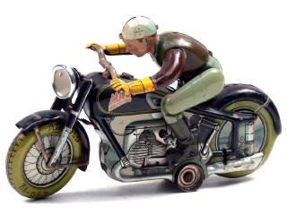 ARNOLD (ALLEMAGNE) 700 MAC 700 Moto avec pilote en tôle lithographiée noir & gris vert