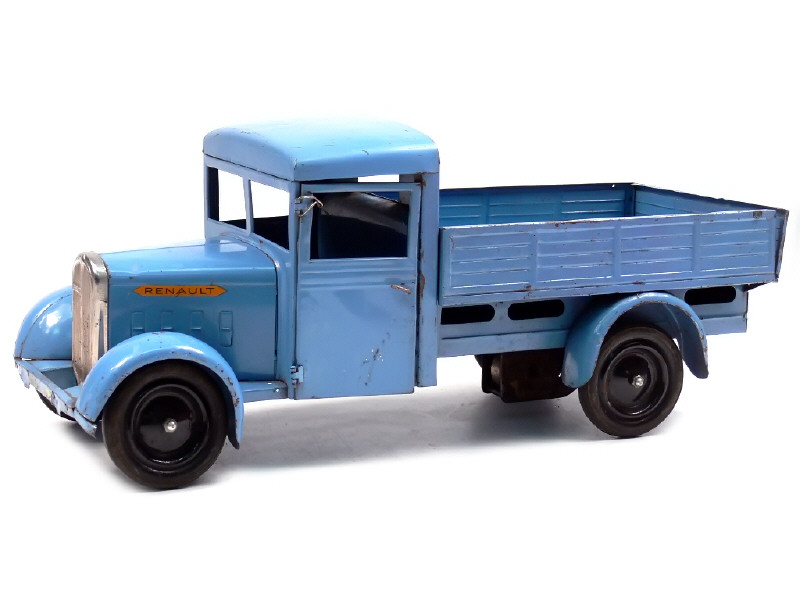 longueur 42 cm - version économique sans phare - moteur à clef (fonctionne) - ridelle arrière mobile - manque volant, un axe de charnière de portière, poignées & attaches de ridelles arrière - traces d'oxydation