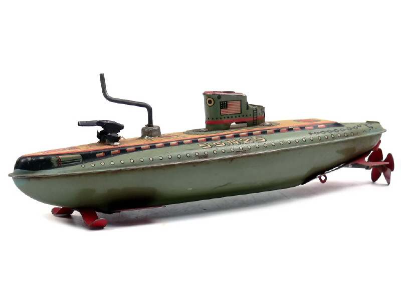 SAN - MARUSAN TOYS (JAPON) Sous-marin S.S.N.25 en tôle lithographiée gris vert, jaune & rouge