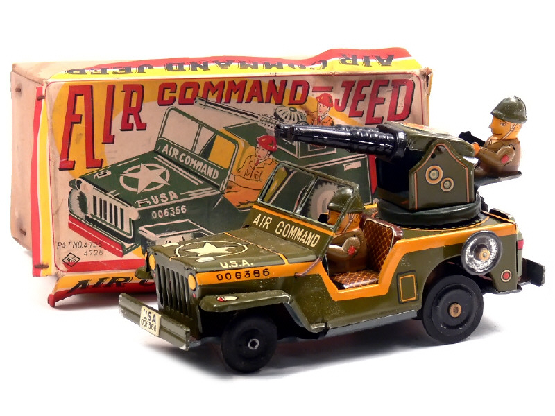 K.K.SAKURA (JAPON) 6366 AIR COMMAND JEEP en tôle lithographiée kaki & jaune