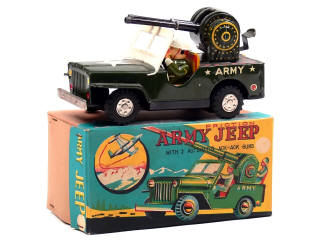 TADA (JAPON) ARMY JEEP en tôle lithographiée kaki, blanc & jaune