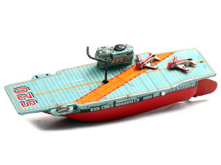 BANDAÏ (JAPON) Porte-avions américain 'BENNINGTON' en tôle lithographiée bleu gris & rouge
