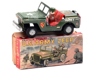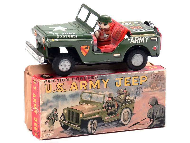 YONEYA (JAPON) JEEP 'US ARMY' en tôle lithographiée vert armée & rouge