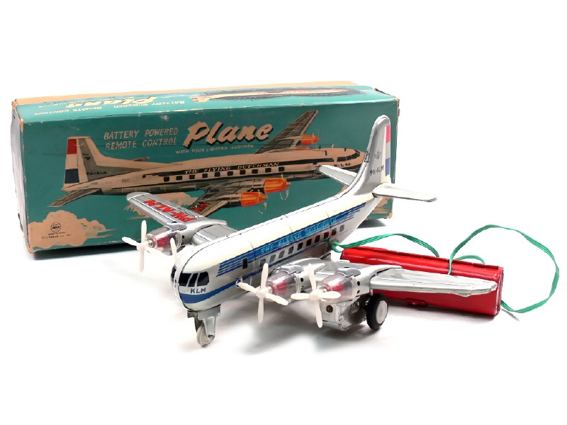 LINE MAR TOYS (JAPON) J-2449 Avion de ligne quadrimoteur 'THE FLYING DUTCHMAN' téléguidé blanc, gris métal & bleu