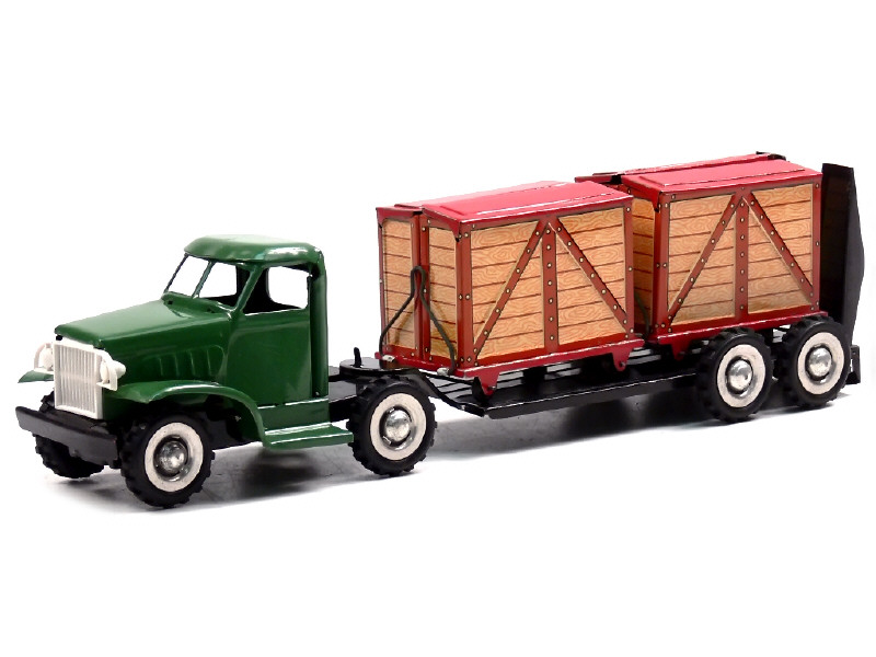 FRANCE JOUETS (FRANCE) GMC Semi-remorque plateau surbaissé en tôle avec containers vert & noir