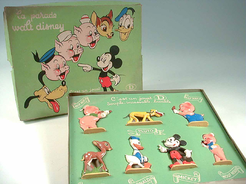 dimensions : 24 x 30 - comprend 7 figurines demi-ronde bosses : NIFNIF, NOUFNOUF, NAFNAF, PLUTO, BAMBI, DONALD & MICKEY - SUPERBE ILLUSTRATION !