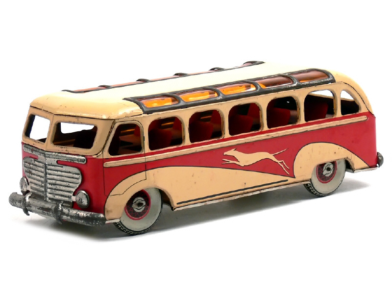 M.L. (FRANCE) 730 Autocar panoramique en tôle lithographiée 'LES GRANDS ITINERAIRES' rouge & crème