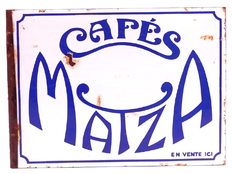 DIVERS Plaque émaillée double face 'CAFES MATZA' bleu & blanc