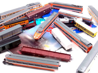 états de 'B' à 'C' - comprend une motrice & différents wagons & voitures de voyageurs - quelques petits manques - on y joint plusieurs notices de la marque, 5 catalogues dont un de plans & de décors de réseaux