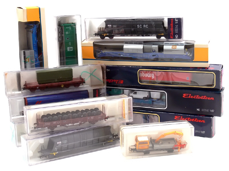 on y retrouve les marques : ELECTROTREN, LILIPUT, NTL & TRIX - quelques boîtes en état 'c' & d'autres non conformes - un modèle repeint - quelques petits manques - plusieurs wagons sans boîte