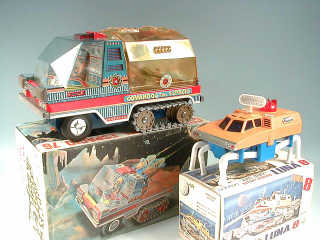 longueur 21 cm - moteur à piles (fonctionne) - feu clignotant - l'engin avance à la façon d'une araignée - le radar tourne