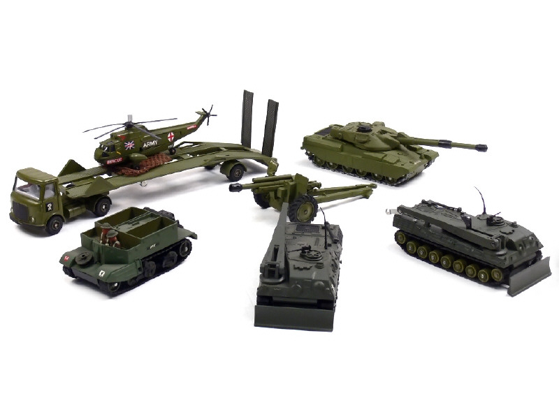 DINKY TOYS (GB) Ensemble de 5 véhicules militaires, un canon & un hélicoptère
