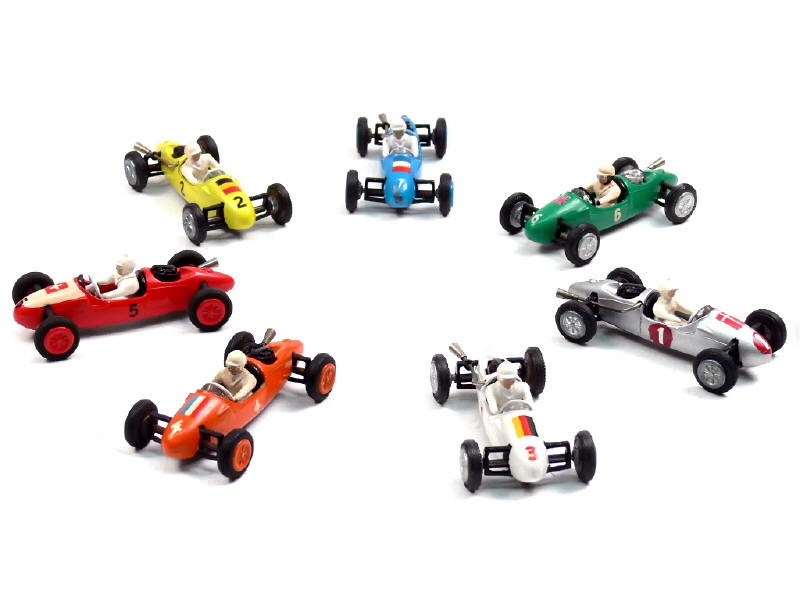 avec drapeau français représenté par un décalque sur le capot de la voiture - axes de roues légèrement oxydés - une fixation d'essieu cassée - SERIE COMPLETE !