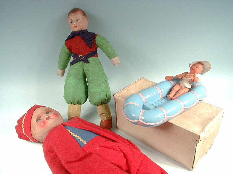 DIVERS Poupée avec tête en carton bouilli rouge & bleu