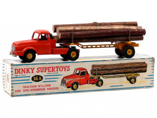 DINKY TOYS (FRANCE) 36A WILLEME Fardier (version avec jantes convexes & remorque ajourée) orange & jaune