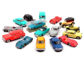 états de 'B' à 'D' - miniatures reproduisant les modèles : ALFA ROMEO, CITROËN, FORD, MASERATI (en état 'E'), MERCEDES (en état 'E'), PEUGEOT, RENAULT (une voiture en boîte état 'b') & SIMCA - petits manques - légères déformations de quelques carrosseries & jantes