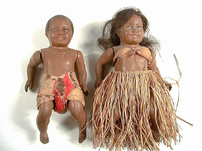 marqués '18 Déposé' - chemises moulées - traits peints & bouches fermées - circa 1930 - hauteur 18 cm