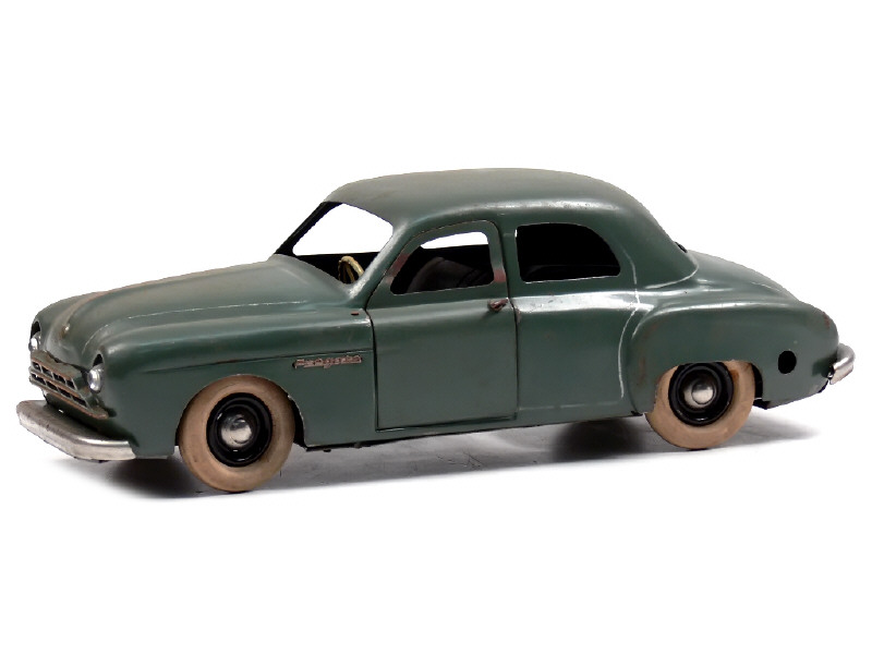 longueur 32 cm - moteur à clef (à revoir) - phares électriques (à revoir) - calandre à 3 barres - porte conducteur ouvrante (légèrement déformée) - légères traces d'oxydation - manque optiques de phares avec leur enjoliveur - 2 fixations de calandre à revoir