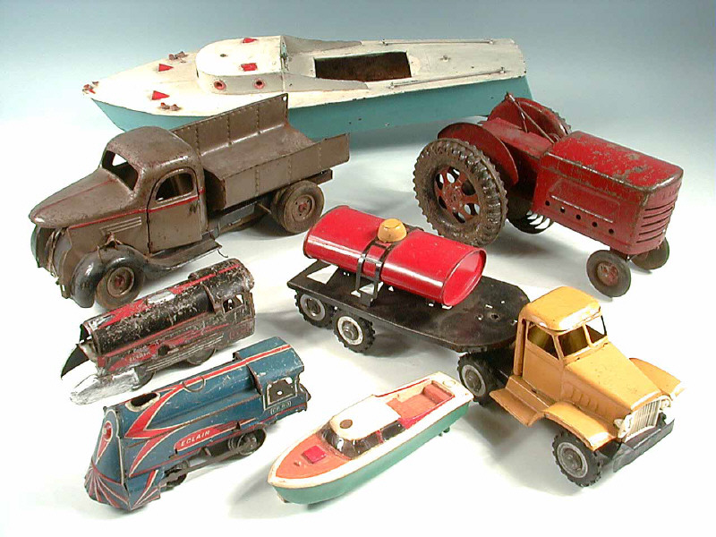 DIVERS Bateau en tôle peinte bleu ciel & blanc