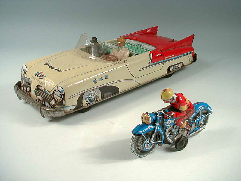 longueur 42 cm - moteur à clef (fonctionne) - avec conducteur & chien - version avec ailerons - frein moteur