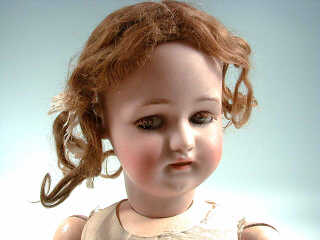 avec tête en biscuit coulé de la maison SIMON & HALBIG, bouche ouverte, yeux bruns en verre - une main incomplète - corps en composition à jambes droites (mécanisme à remonter et à restaurer) - H 60 cm - circa 1905 - ROULLET-DECAMPS était fabricant d'automates et de jouets mécaniques