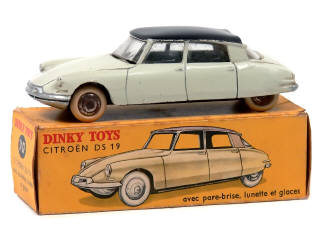 DINKY TOYS (FRANCE) 24CP CITROËN DS 19 (version avec vitres & jantes convexes) blanc cassé, toit aubergine
