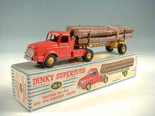 DINKY TOYS (FRANCE) 36A WILLEME Fardier (version avec jantes convexes & remorque ajourée) orange & jaune