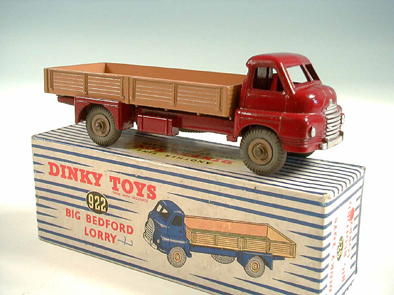 DINKY TOYS (GB) 922 BIG BEDFORD Plateau à ridelles bordeaux & ocre, jantes beiges
