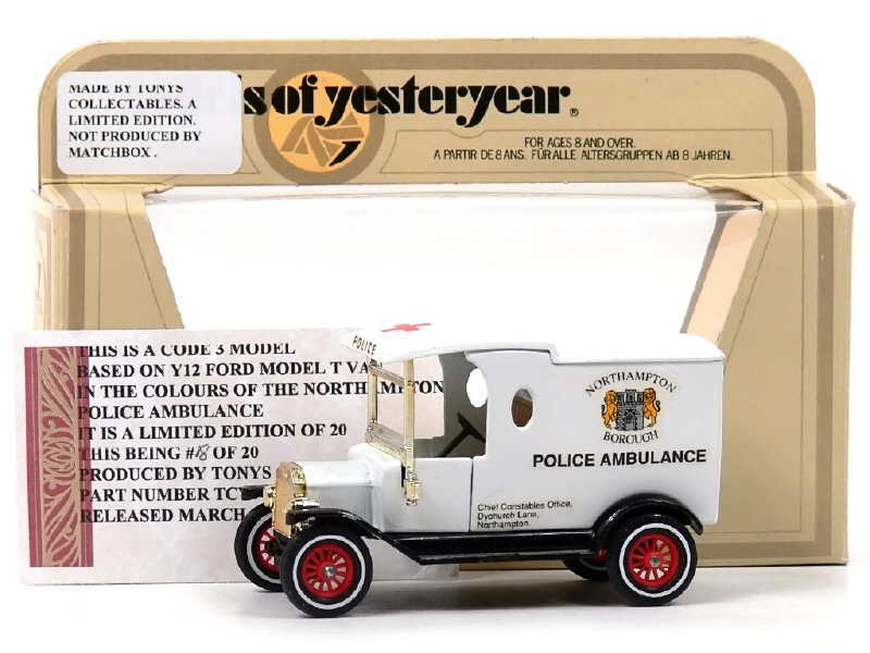 TONYS COLLECTABLES (GB) TCY04 FORD T Van 'NORTHAMPTON POLICE AMBULANCE' blanc & noir