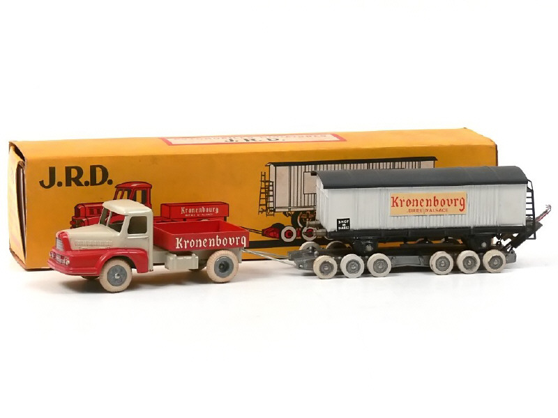 JRD (FRANCE) 123 UNIC avec remorque rail-route 'KRONENBOURG' blanc cassé & rouge