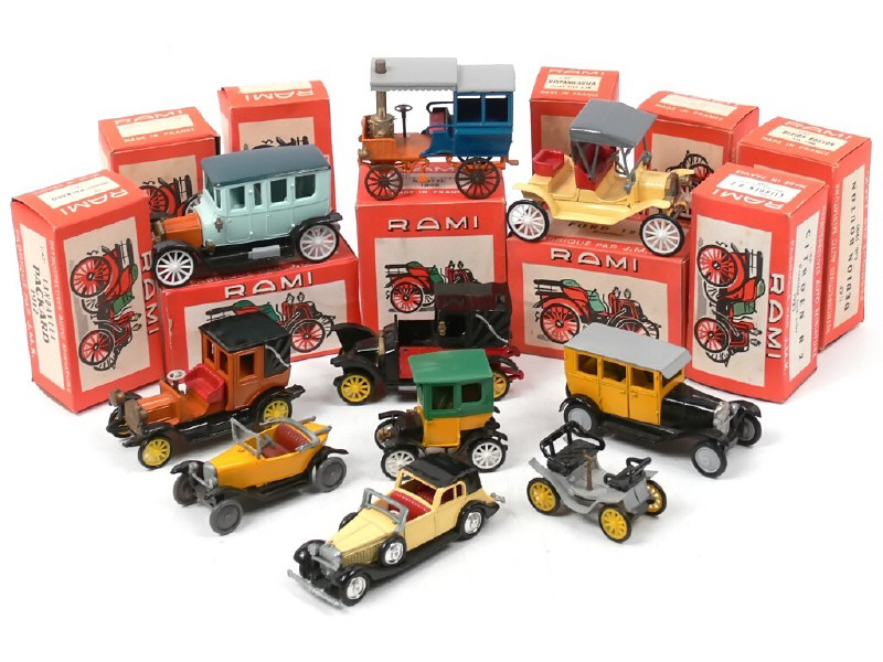 comprend : SCOTTE 1892, DEDION BOUTON VIS A VIS 1900, DEDION BOUTON 1900, RENAULT 'TAXI DE LA MARNE 1907' (manque 2 éléments), FORD T roadster 1907, LORRAINE DIETRICH 1911, PACKARD LANDAULET 1912, CITROEN B2 1925, CITROEN 5HP & HISPANO-SUIZA J-12