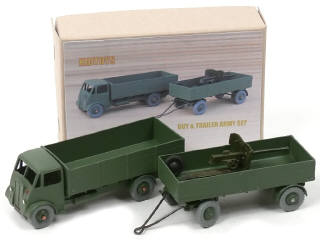 contient un GUY plateau à ridelles hautes militaire & une remorque avec canon - réalisation sur base DINKY TOYS GB - BELLE REALISATION !