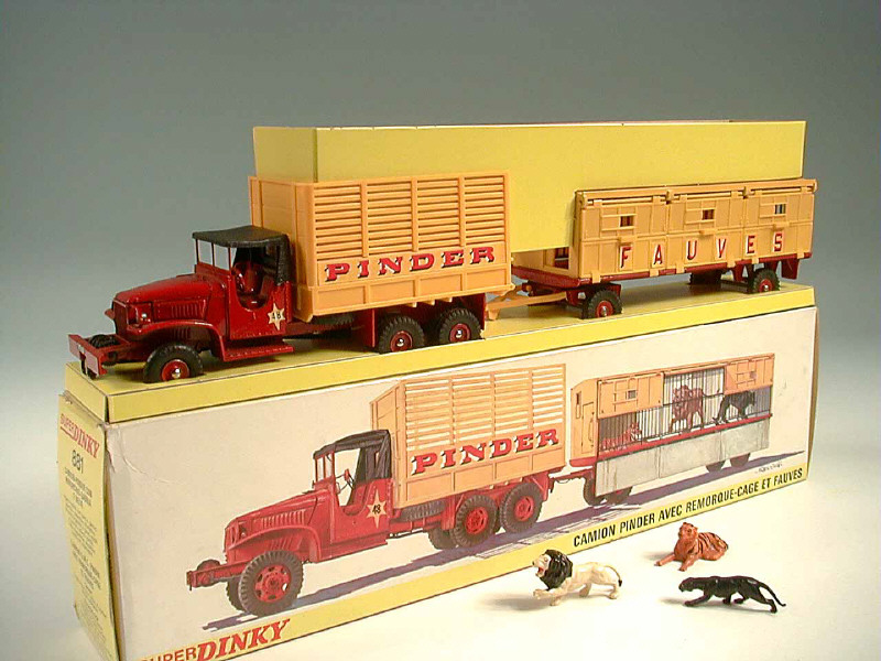 DINKY TOYS (FRANCE) 881 GMC 'PINDER' avec remorque-cage à fauves rouge & jaune