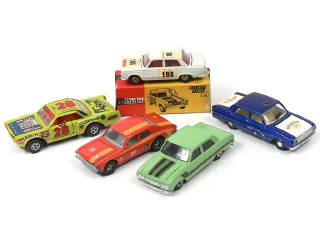 états de 'A' à 'B' - comprend : FORD FALCON (2 exemplaires dont une 'POLICIA'), CHEVROLET CHEVY NOVA RALLYE, PONTIAC STOCK CAR & FIAT 1600 RALLYE (avec boîte en état 'd')