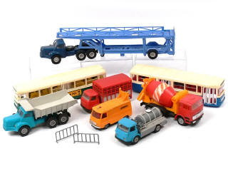 NOREV (FRANCE) Ensemble de 5 camions, 2 autobus & une camionnette