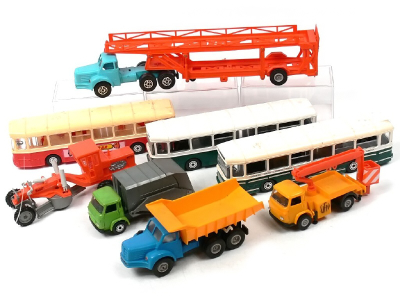 NOREV (FRANCE) Ensemble de 4 camions, 3 autobus & un engin de travaux publics