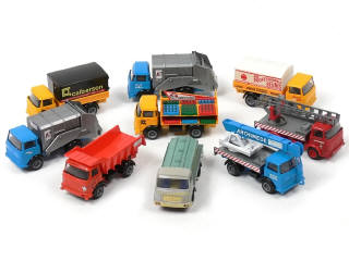 états de 'A' à 'B' - miniatures reproduisant les modèles : BERLIET & MERCEDES - on y joint un BERLIET arroseuse-balayeuse de la marque FRANCE JOUETS en état 'D'